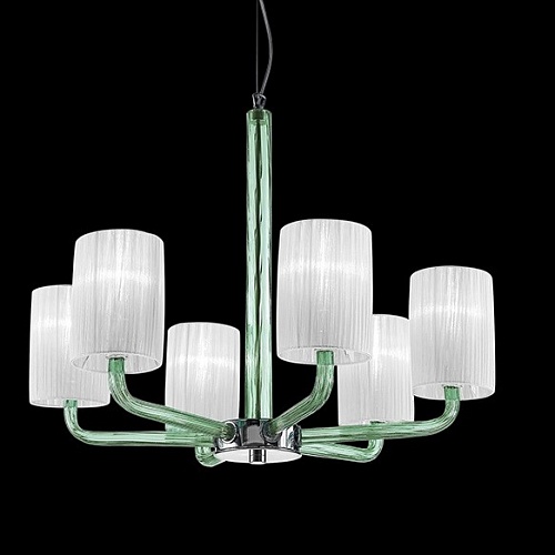 Подвесные люстры SYLCOM. CANCAN Модель 2120/6/K/OCE, хромированная металлическая конструкция, отделка стеклом цвета морской волны, H=580 мм D=700 мм, под лампы 6xE14 42W.