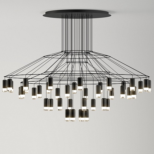 Подвесные люстры Vibia. Wireflow Chandelier 0376, арт 0376-04-1A, цвет черный, диммируемый, H=1120 мм D=1500 мм, под лампы 42xLED 4,5W 2700K 20591lm CRI>80 350mA.
