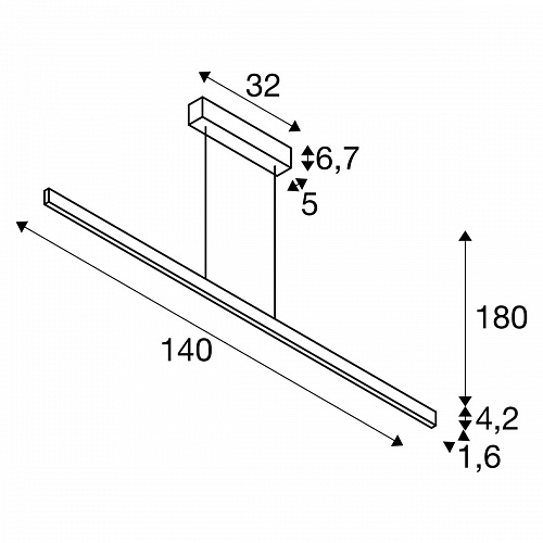 Подвесные светильники SLV Marbel. ONE LINEAR 140 TRIAC PD UP/DOWN, арт 1006188, светильник подвесной 35Вт c LED 2700/3000K, 1810лм/2855лм, димм., черный.
