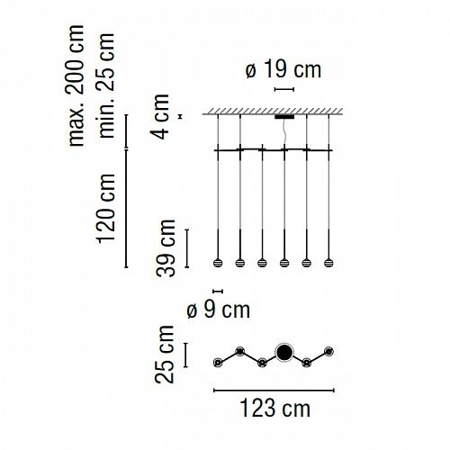 Подвесные светильники Vibia. Algorithm 0830, арт 0830-18-1A, цвет графит, диммируемый, H=1200 мм L=1230 мм W=250 мм, под лампы 6xLED 3,15W 2700K 1873lm CRI>80 1050mA.