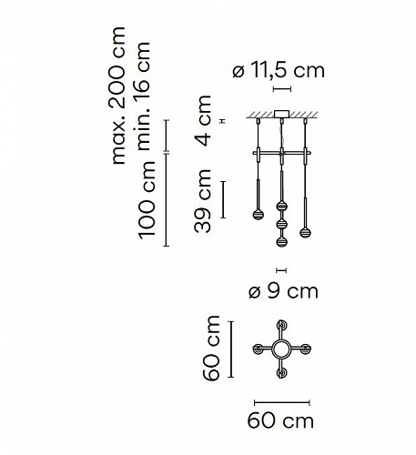 Подвесные светильники Vibia. Algorithm 0857, арт 0857-18-1A, цвет графит, диммируемый, H=1000 мм L=600 мм W=600 мм, под лампы 5xLED 3,15W 1050mA 2700K CRI80 1562lm.