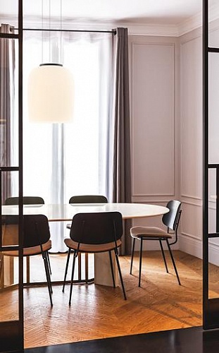 Одновременно эффектный и изящный, призрачный кулон низко свисает с почти невидимых кабелей, образуя плавающую фокусную точку. Изготовленная из выдувного опалового триплексного стекла, его гладкая поверхность излучает теплое, светящееся сияние.