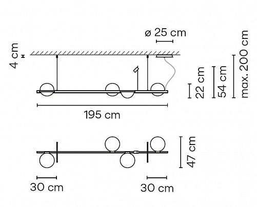 Подвесные светильники Vibia. Palma 3736, арт 3736-18-1A, цвет графит, диммируемый, L=1950 мм, под лампы 6xLED 4,6W и 1xLED 2W, 2700K 2730lm 500mA.