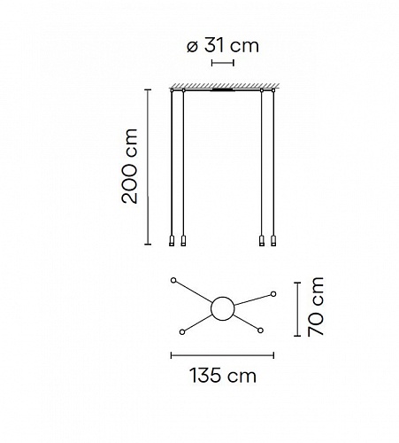 Подвесные светильники Vibia. Wireflow Free-Form 0351, арт 0351-04-1A, цвет черный, диммируемый, L=1350 мм W=700 мм, под лампы 4xLED 4,5W 350mA 2700K CRI80 1961lm.