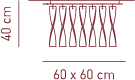Конструкция с хромированным покрытием или сусальным золотом, украшена витыми подвесками ручной работы из муранского стекла (доступны в нескольких цветах: хрусталь, белый, красный, чайный).