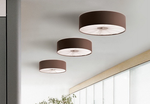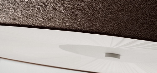 Потолочные люстры AXO Light. SKIN, Модель PL SKI 070 E27 MA BC, абажур из коричневой огнестойкой ЭКО-кожи, белый радиальный рассеиватель, D=700 мм, под лампы 2xE27 20W.