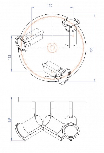 Споты Astro Lighting. MISUMI, арт 6080 Astro, цвет полированный хром, защита от влаги IP20, D=220mm, под лампу 3x50w GU10.