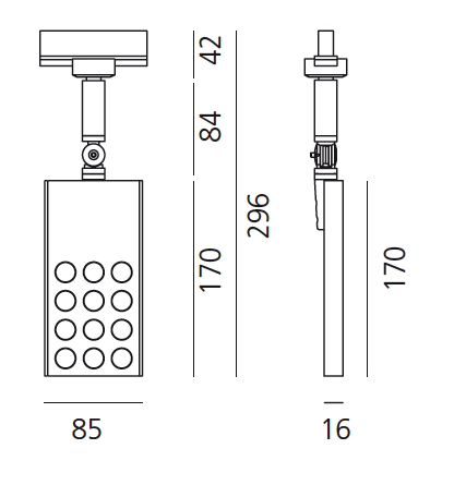 Светильники для шинных систем Artemide. PAD, арт 200003M, цвет анодированный, регулируемое наклон и вращение, степень защиты IP40, цветность освещения тепло-белый 3000К 1xLED 13W 2x5° 220V