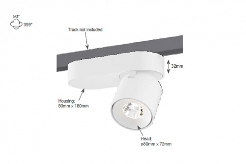 Угол рассеивания луча 28°. Светодиодный модуль с 10 диодами. Пассивное охлаждение (без вентилятора). Настраиваемый наклон до 90° и поворот до 359°.