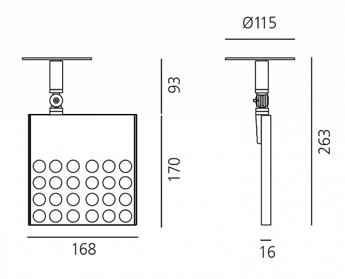 Встраиваемые светильники Artemide. MAXI PAD, арт 202004M, цвет анодированный, регулируемые наклон и поворот, степень защиты IP40, под лампу 1x LED 26W 2x19°