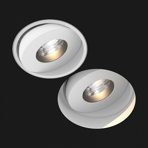 Угол рассеивания луча 28°. Светодиодный модуль с 10 диодами. Пассивное охлаждение (без вентилятора). Настраиваемый наклон до 30° и поворот до 359°. После монтажа светильника, шов стыка между потолком и светильником нужно заштукатурить.