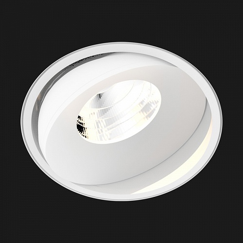 Угол рассеивания луча 28°. Светодиодный модуль с 10 диодами. Пассивное охлаждение (без вентилятора). Настраиваемый наклон до 30° и поворот до 359°. После монтажа светильника, шов стыка между потолком и светильником нужно заштукатурить.